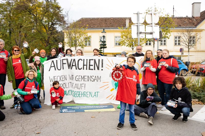 Am Wochenmarkt in Baden läuteten am 15. November um 5 vor 12 Uhr ein dutzend Wecker. Gleichzeitig verharrten dreidutzend AktivistInnen für eine Minute reglos, um auf die Klimakrise aufmerksam zu machen. Die Unterstützungserklärung kann in ganz Österreich unabhängig vom Hauptwohnsitz in jedem beliebigen Gemeindeamt, Magistrat oder Magistratischem Bezirksamt geleistet werden. Mit der Handysigantur oder der Bürgerkarte kann die Unterstützung auch bequem von zu Hause vom Sofa aus geleistet werden. Der Gemeindeamt am Hauptplatz in Baden hat jeden Wochentag von 8 bis 12.00 Uhr geöffnet (Unterstützungserklärungen Parterre re, Zi. 3) .